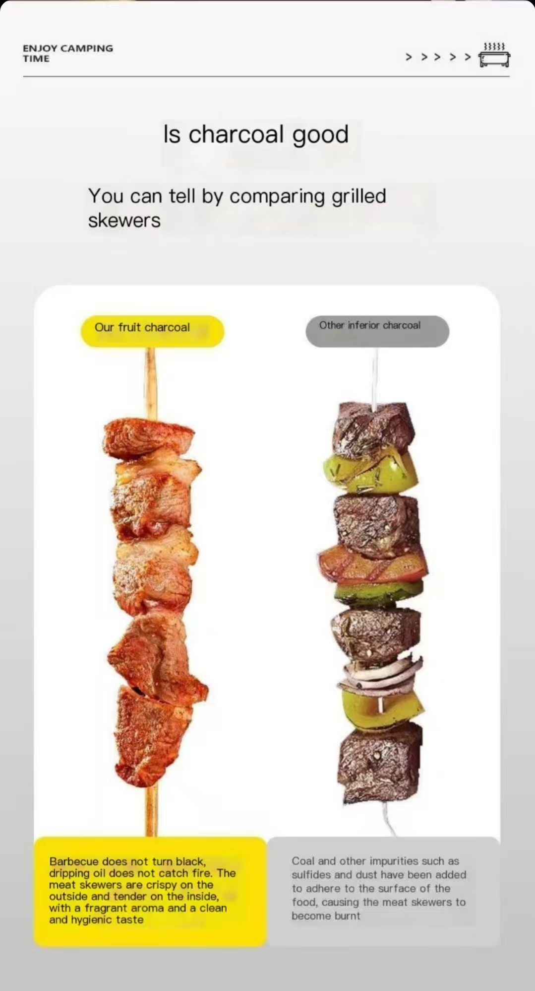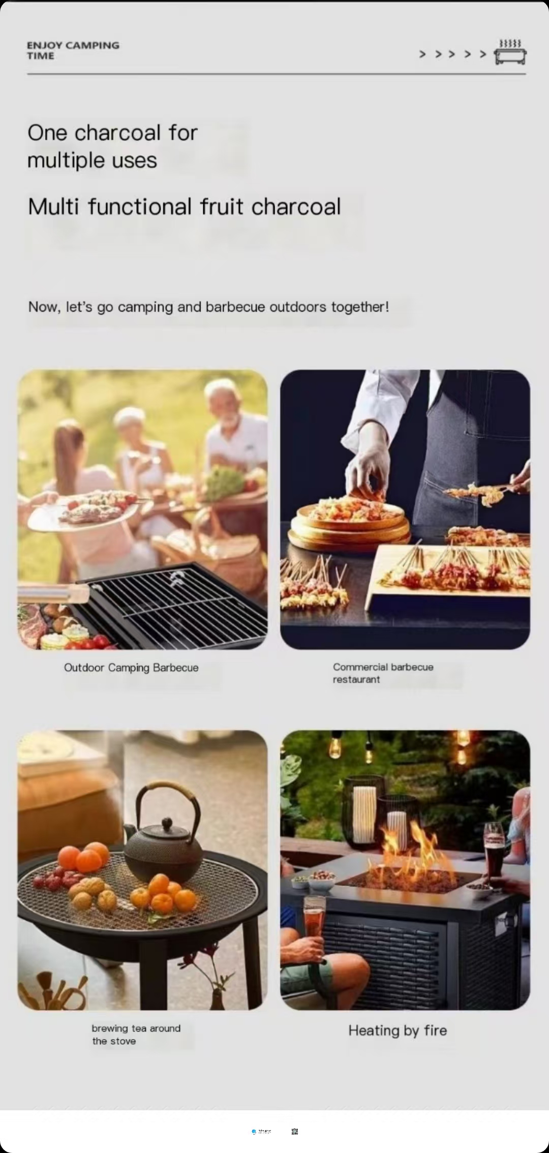 Quick-burning fruitwood charcoal for barbecue, smokeless, easy to ignite, does not flare up with dripping oil, suitable for indoor and outdoor grilling