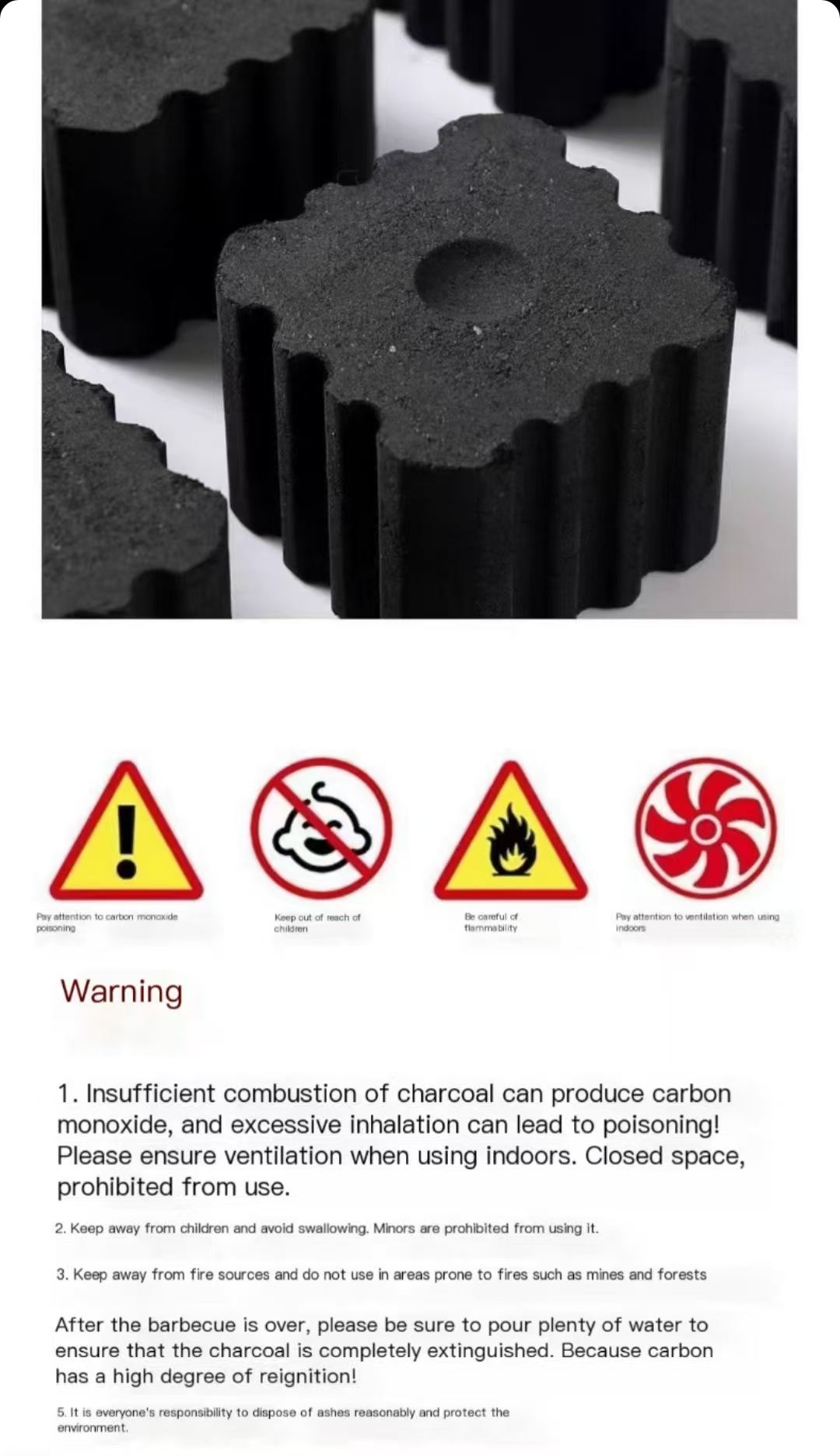 Features: Smokeless, Odorless, Quick to Ignite, High Calorific Value